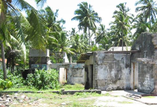 Nous passons par Kalatora, lieu de pèlerinage où se trouve le plus grand dôme bouddhiste du pays. Il est entouré de Koltamber arbres endémiques du Sri Lanka aux larges feuilles. Ces arbres se rencontrent un peu partout et permettent l’aménagement de zones d’ombre, particulièrement dans les parc et jardins des hôtels. En approchant de Galle, nous voyons de plus en plus les stigmates du tsunami de 2004.